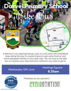 Cycle Station in partnership with Ayrshire Roads Alliance and Darvel Primary School were delighted to bring the concept of the ‘Bike Bus’ to Darvel on Wednesday the 12th of June 2024.